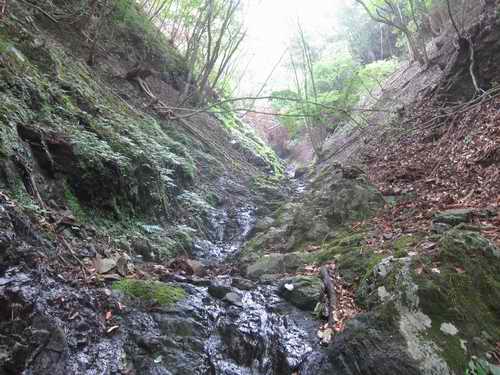 二俣から堀山方向の登山道で勘七・小草の分岐点までに行くつもりで歩いたが、ナニを何処かで間違ったらしく、すぐに沢沿いの踏み跡になってしまった。