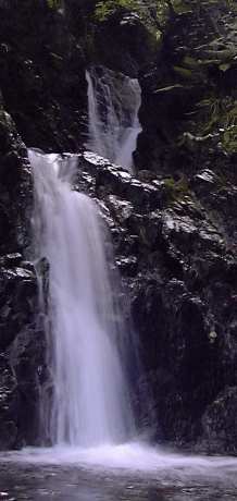 ゴトゴトの3mの小滝をはさんで2mと5mのゴルジュ状の2段滝の上部は左右の足のつっぱり、右壁の大きなホールドを掴んで楽しい登りだ。これが横向きの滝と言うのかな