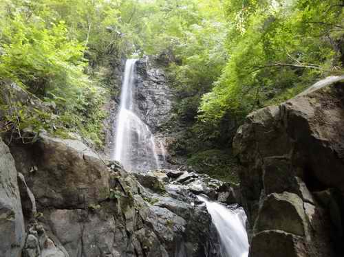 滝壺に立ち、上を見上げると飛沫が顔にかかる。滝風が体を押すような気がして心地よい。