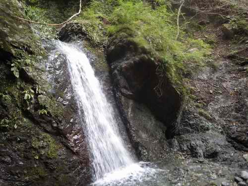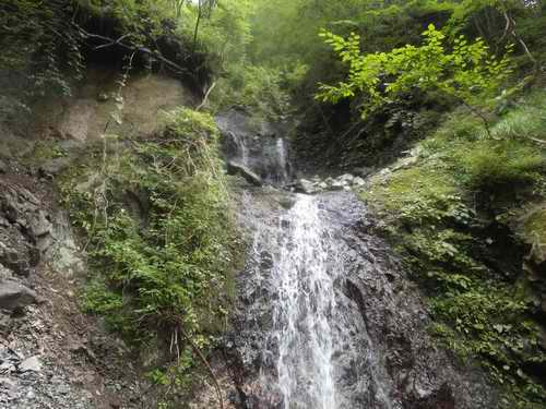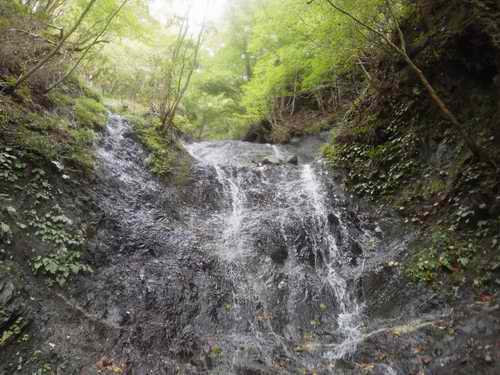 自宅6:00〜三廻部経由県民の森駐車場7:30〜二俣7:45〜ミズヒ沢出会8:00〜ミズヒ滝8:10_15〜奥の二俣9:05〜右俣へ〜露岩を登る9:30〜マルガヤ尾根(標高1150m付近)9:40〜本沢の頭(P1341m)9:55〜マルガヤ尾根に戻る10:00〜下降〜本流出会に下降10:30〜二俣10:40〜県民の森11:00〜実朝首塚公園11:40_50〜自宅12:30 20150905