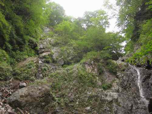 水無川のF1の水量も少なく、普通なら滝の右側から登ると出だしからシャワーを浴びるが、今日なら滴はあびてもシャワーにあう恐れはまず無い。