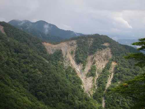 崩落帯右端に古い仕事路があったとおもう(お化け沢の滝付近に降りる)