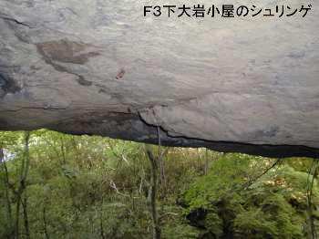 雨が降ったときには雨宿りが10人以上は出きる水無川本谷F3の小さなハングである。