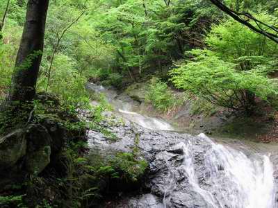 自宅5:00〜小野橋5:20〜バス発着所6:00〜ケーブルカー駅下6:10〜入渓6:10〜鉄パイプ砂防堤6:30〜二俣ウインチ跡7:15〜二重社7:30_35沢歩きは終わり〜大山神社7:40_50〜ケーブル下駅8:00〜バスターミナル8:10〜自宅に8:50 2009/04/26 朝方は曇りだが、帰路には快晴 風は最初無しだが徐々に南風/強風に。なんだかんだ言っても風薫る良い日である。