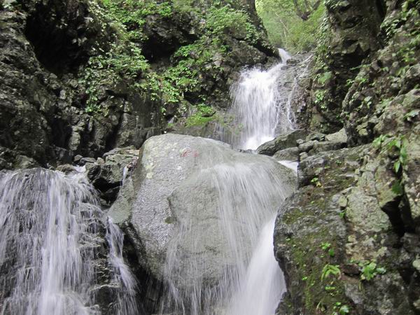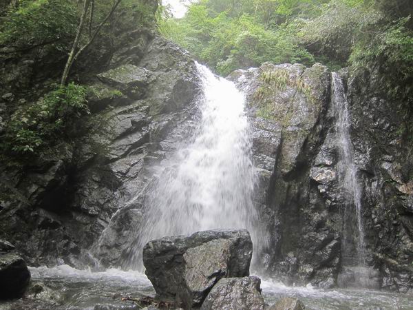 自宅6:00〜本厚木6:36〜渋沢7:02〜大倉7:20〜戸沢出会8:25〜水無川F18:50〜背戸の沢(左)8:55〜大滝9:10〜開策新道9:55(下山)〜水無川〜戸沢出会い10:25〜戸沢林道〜大倉11:38〜渋沢12:01〜本厚木12:25〜自宅12:45 2011/08/27 霧雨〜曇り