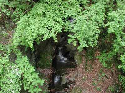 そして、その滝を登り切った右手のブナの根っ子からコンコンと流れ出し、それがこの沢の源流水になる。