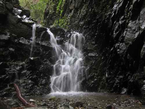 そこらにF9とかのプレートがあったかな。だからといって滝があるかといえば、あると言えばあるし、違うと思えばプレート表示は偽物とも感じることになるだろう。全体的な沢の傾斜は急だが、明確な滝は見あたらず、あえてそれでもと言えば水が左岸からしみ出す所の3〜4mの段差が滝だ。ここらでは湧き水以外の流水でも手にすくって見ればとても冷たい感じる。全部そこらの岩の間からしみだした直後なのだ。事実この滝を越えるとガラガラと石が堆積して水はもう流れてない。