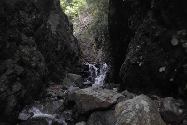 橋の下流側から沢に入り、橋の下を通り抜けて橋の上から見える小滝を超え、左に曲がる。ゴツゴツした岩床と小滝を済ますとF1だ。多くの人が入る沢だし、俺自身だって何回も入ったことがある沢だから、沢の詳細を説明することもないとおもう。でも、そうしたら何も書くことがなくなり、即ENDでもよくなってしまう。だから、くどくてもしつこくても何か書くのだ。
