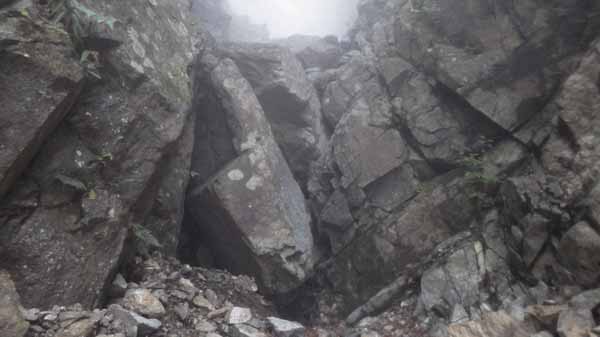 少しでも早く抜け出ること、そのためには休まず息の続く範囲で急ぐこと。あの岩まで行けばちょっとは安全になるよなあ。