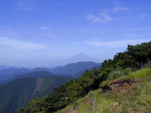 自宅5:10〜善波トンネル〜大倉〜龍神の水(ただのシミだし水に思えてマシラにとっては全く美味しくない)〜新茅山荘(自転車を置く)7:05〜新茅の沢〜烏尾山荘8:40〜烏尾尾根〜新茅山荘9:25〜山岳SC9:50(会合)14:00〜自宅15:00 善場トンネルをくぐるとその先はむっとした熱気の町中である。さんざん汗を流して家に帰り着いたらいささか熱中症気味に成ってしまった。2001/07/01ちょう〜むんむんな夏空