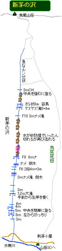 一旦は水も涸れてもう源頭なのかなと思わせるが歩き疲れた頃から再び水が流れてF10 3mのナメ、