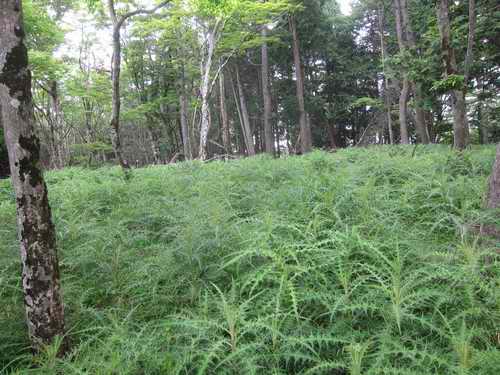 自宅4:30〜堀川〜三廻部〜中山峠6:10〜寄大橋6:35〜滝郷沢出会(森林保護管理小屋前)6:45〜二俣(右へ)7:20〜二つめの涸棚を終えて仕事道に8:25〜モノレール尾根8:30〜二つめの仕事道探索〜モノレール道へ戻る8:50〜檜山(付近のアザミ原)9:00〜登山道9:05〜雨山9:25〜雨山峠9:35〜寄沢(イイハシの大滝見物)10:10_50〜寄大橋11:20〜土佐原(見晴台)11:40〜中山峠(住吉神社)11:55〜三廻部〜246〜自宅13:00 曇り(帰路秦野は雨)20130608