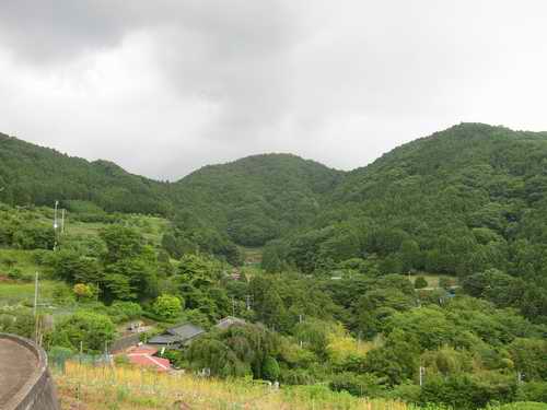汗は出るが、この道の何カ所かには湧き水の飲用場が整備されているから困らない。展望台付近からは山裾から中腹にかけ茶畑の中に点々と家々が見えて、