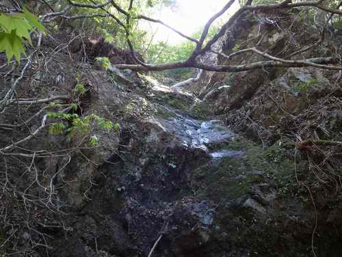 一つも滝を見てない内から水が涸れた。少し沢が狭まっていたかな。歩き出していくらもたっていないと思うが、「あれれ 二股があると聞いていたが、見逃してしまったかな」である。