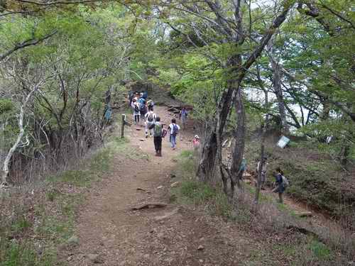 それの実態を見たことはない。そういうことは後年聞いて知っているだけの年代である。が、聞いて脳裏に残っていることと比較すれば、今日はそれと同じか、あるいはそれ以上の人出であったのではないだろうか。登山道の向こうからやってくる人が見えてない時間は少しの時間であっても無かった。二十人・三十人が団体で次々やってくる。これらの送迎をまかなうには本日のヤビツ峠行きバスが大増発されたであろう事は想像するまでもない。中高年はもとより若年もたくさんいるのだ昨今の傾向とも聞く。若い女性も数え切れないほど多い。これらの人がまた大変マナーが良く、行き交う相手であるマシラに一人一人が皆「こんにちは」と挨拶をくれるのだ。美人さんの挨拶は嬉しい。が、彼女等にだけ愛想よくというわけにはいかず、他は返事をするのが煩わしいなんてココでは口に出しては行けない。道の傍らに立ち「ゴキゲンヨウ」と全員ににこやかに返答しなければならない。だが内心は「速く歩いて通り過ぎて欲しいナ」と結構ジリジリして待っているマシラ。