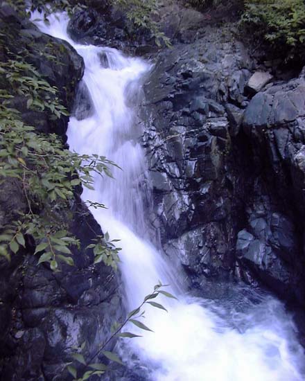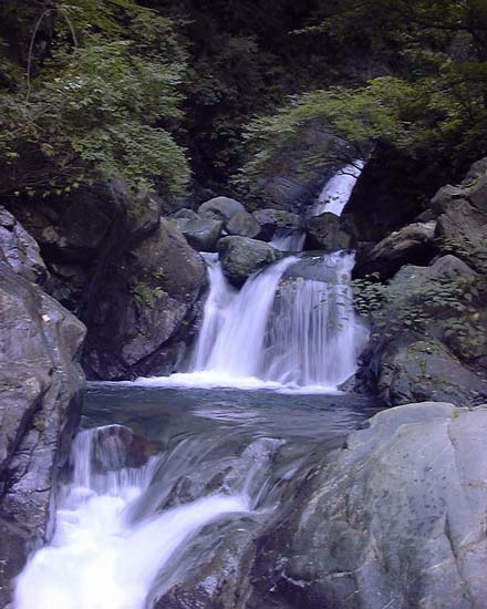 急傾斜の小滝群を越すと二俣である。