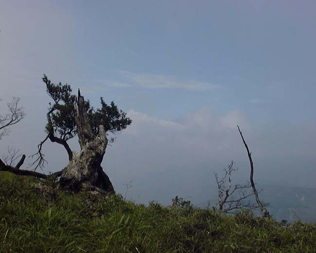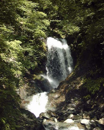 自宅5:20〜キュウハ沢出会7:00〜大滝8:00〜二俣8:55〜竜ヶ馬場9:55→10:20〜日高〜三角の頭10:37〜キュウハ沢出会い10:55〜自宅12:10 2000/07/22