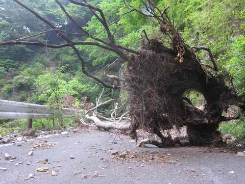 道路をふさぐ倒木
