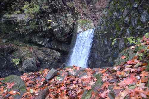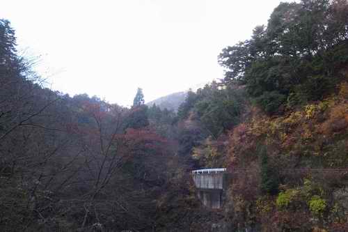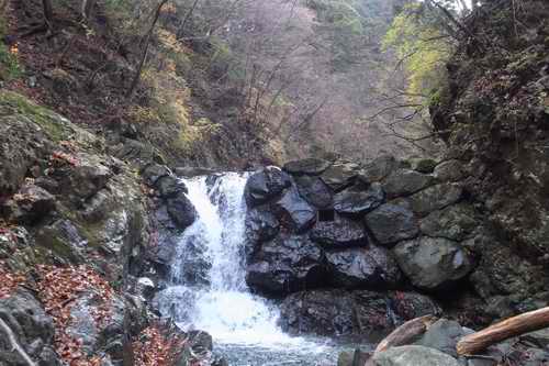 本谷川沿いの渓流沿いの木々は葉をあらかた落としている。数は少ないが色付いたのを梢付近に残しているのも少しはあって悪くはない。