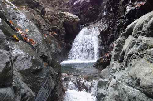 難しい滝がない。ナメが綺麗。水が途切れるあたりから奥の稜線にかけては何処を登ってもたくさんの落葉樹が待っていて、そこらは夕日が差し込む美林帯だから、もしかしたら散りぎわの紅葉が残っていたりしてないかなあ……と考えた場合には此処ははずせないコースだ。