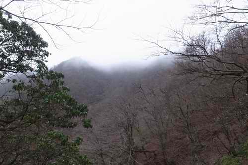 霧は三角の頭が右の直ぐ上に見える辺りから周囲にこもり始めた。