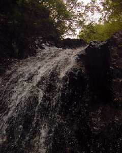 登る場合は、左手から入ってできるだけ上まで登り、落ち口の下で流水をかき分けて右側に移って墜ち口に至るとなっているが、最初から右側を攻めていっても登れる可能性が有りそうに思える。