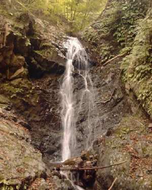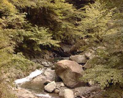 更に小滝(2,1,3m位)を越すと行く手の木々の間に大棚が見えてくる。