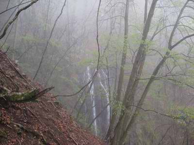 自宅5:10〜宮ヶ瀬6:10〜塩水橋6:30〜キューハ沢出会いの少し手前に7:10自転車デポ〜大棚沢出会い7:15〜大棚8:20〜長尾尾根9:00〜P1202m〜適当に下降を開始して中断 元に戻る9:05_15〜大日とお化け沢の分岐部に伸びる尾根を下降開始9:20〜お化け沢:大日沢の二俣へ下降着9:35〜お化け沢径路入り口9:40〜お化け沢径路〜大棚沢右俣付近で径路不明・・・本来より100m程上側を適当に歩いて〜大棚沢大棚下10:30〜径路に戻る〜五町歩棚で撮影大会11:00_15〜五町歩沢右岸尾根を下降〜出会いより150m程下流で本谷川に11:30〜五町歩沢出会い11:35〜自転車デポ11:40〜自宅13:00 2009/04/18 曇り 山の中では霧 長尾尾根では見通し無し だが山を歩くにはちょうど良いくらいの良い日だった。