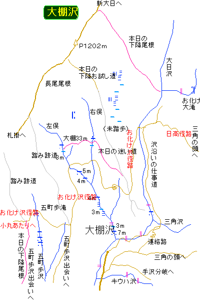 逆路だったら絶対こうはならなかったと悪態をついたコースはずれの代償は、順調にいけば、お化け沢から大棚沢まで10分で済むところを30分はかけてしまい、