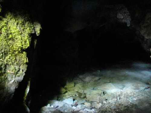 二度目の時、入り口はそれよりも小さめだったが、水位が一度目よりは下がっていたので、内部に入る事が出来て、奥の5m程迄が見通せた。