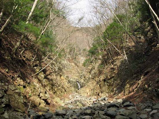 始めの滝は傾斜強く、岩は脆そうなので右から巻く。残りは楽勝な簡単な登り。小滝群を過ぎると水量はグンと水嵩を減らす。そしてガラ場状の沢が奥に伸びる。そのガラ石を踏んで上を目指す。