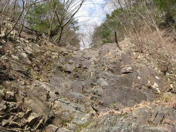 それで右側の露岩帯に入ったが、のっぺりとした露岩に思わぬ方向に進むのを強いられ、落ち口までの高さの三倍くらいになる大巻きになってしまった。