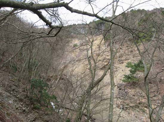 沢を横切る経路道から三角沢を見る