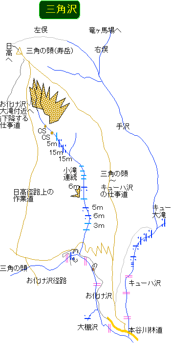 逆ルートで確実に五町歩滝にたどり着けるだけのルート探索力はなく、素直にお化け沢左岸の仕事道を使うのが常道だ。