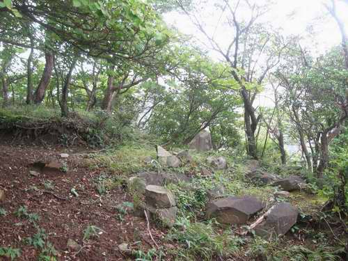 そんな感じで赤土斜面を登り切ると、日高から三角の頭に続く尾根の上に立つことになる。日高までは5分とかからない位置である。帰路は三角の頭経由でキューハ沢出会いへの一番ショートなコースを取る。