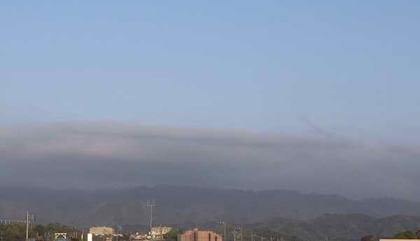 他は全く晴れているのに、大山から蛭ヶ岳にかけての山頂及び上方にだけPM2.5の塊のような雲が不気味に漂っていた。