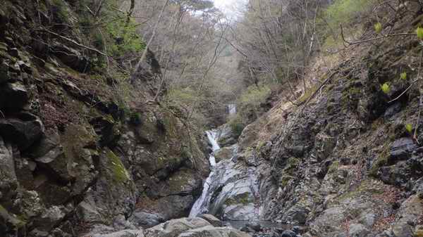 直ぐ上に連続する小滝は落口を渡って右側から回り込む。