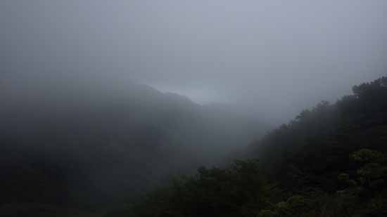 山を流れる霧に見通しは30m位か。