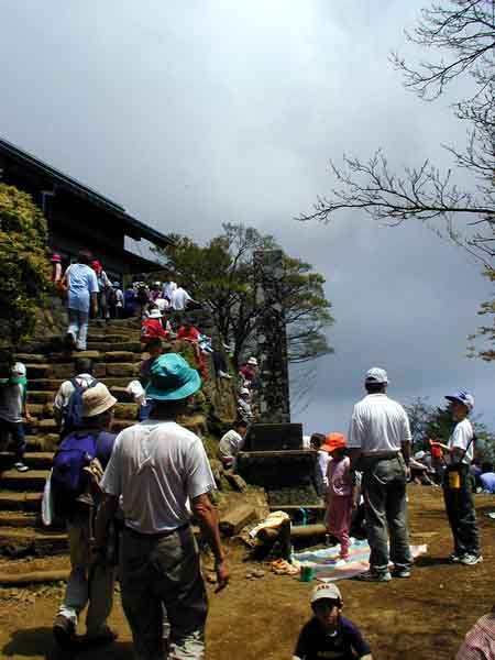 東屋からもペースは変わらず、あっと云うまに腰を下ろす隙間もなく人に埋めつくされ、これが黒山の人だかりというんだろうと思われる大山頂上につく。