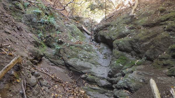 水量は僅少なのが残念だが、岩の段差がはっきりした見栄えそこそこの滝なので、これならば奥にも滝があって楽しいかも知れないと二匹目のドジョウを期待してやってきた。