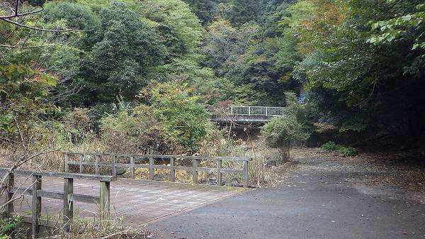 青山橋の下をくぐり、登りはじめの広場に出て、秋の柔らかい日差しに染まる対岸の高取山を見て、のんびりダムまで戻るかと