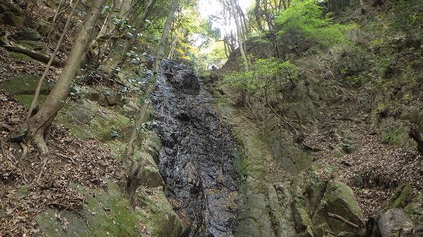 直瀑とまは行かないが、黒々として立ち、岩面に水流が細く落ちて、見てくれは悪くない。