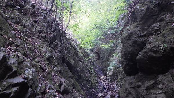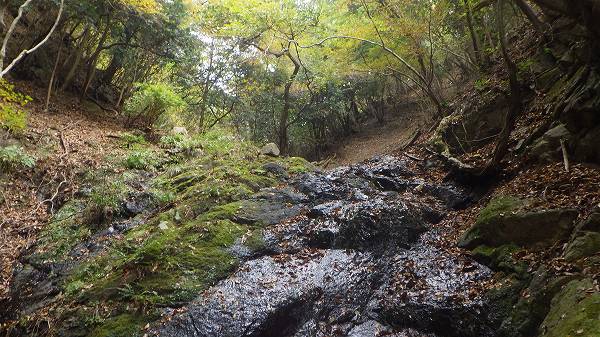 数本の沢状のいずれも雨上がりならそれなりに水流があるが、晴天が続くとたちどころに涸れ沢となる。