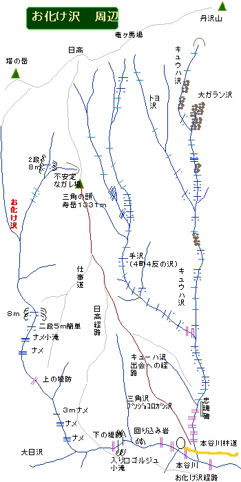 二度目はお化け沢の「大滝」まで行ったところで、日頃の悪行に閻魔様からの鉄槌として腰に「悪魔のハンマー」が突如打ち落とされ、ほうほうの体で逃げ帰り、自宅に帰ると同時にへたり込み、立ち上がるのには、その後1週間の寝込みの日々が必要だった。
