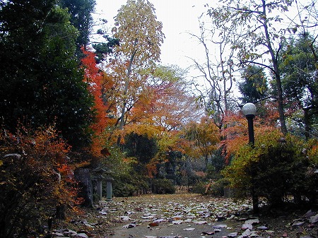 枯れ葉の道をもみ手をしながら歩く。