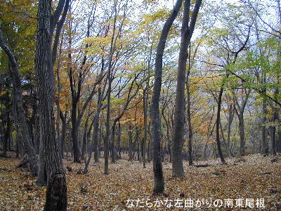 山頂から三角点に戻り、そこから「南東尾根に入る」。