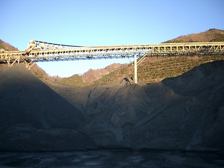 採石工場で製造された製品は富士山のように積み上げられている