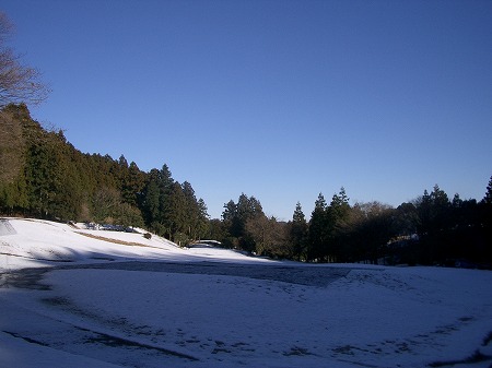 さっきの踏み跡は鉄砲打ちのもので、今日はこの沢の辺りで猟を行っているらしい。ゴルフ場も雪が降れば猟場になるらしいし、このあたりの鉄砲打ちは会社つとめのサラリーマンが趣味で行っている場合もあるから松の内に殺生をしないなんていうマタギ風な風習なんて無いんだなと思った。芝の上の雪にスーッと伸びて残る犬搬送の軽トラの轍。
