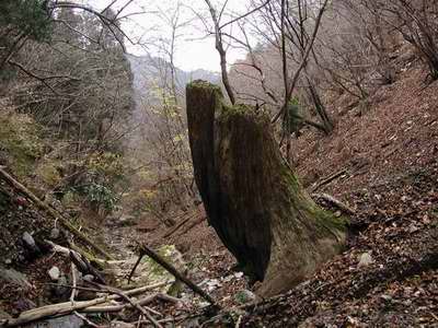 宮ヶ瀬ダムが出来る前の石小屋に有った旅館から見上げる対岸には露出した急傾斜な大岩の壁で覆い尽くされ、それが100m以上も仏果山に向かってそびえていた記憶がある。
