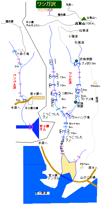 鷲ヶ沢は山びこ大橋から300mほど半原側に寄った場所にある小さな沢で、2年ほど前の小雨の降っている日に入ったことがある。